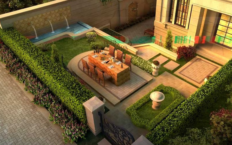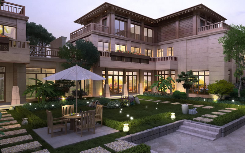 針對(duì)別墅庭的特點(diǎn),在其綠化形式上應(yīng)采用點(diǎn)、線、面相結(jié)合的復(fù)合綠化模式,最大限度地發(fā)揮綠地系統(tǒng)的實(shí)用功能。如增加立體綠化、垂直綠化和屋頂綠化,在提升別墅庭院舒適性的同時(shí),有效實(shí)現(xiàn)隔熱、蓄水、凈化空氣等生態(tài)功能;采用喬木下面種植灌木、灌木下面種植草花、地被等的復(fù)層綠化形式;我們以人為本,充分展示和實(shí)現(xiàn)業(yè)主的生活品味。