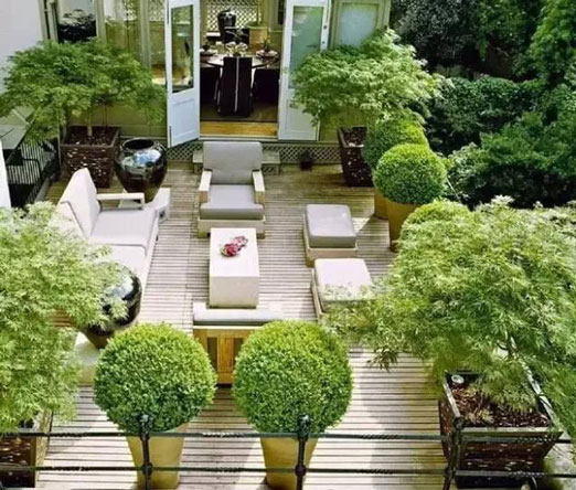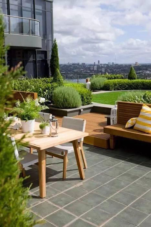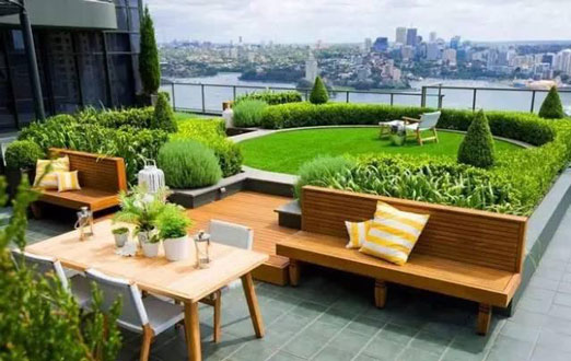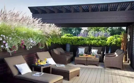 隨著人們生活條件的日益提高,多層階梯式公寓和別墅的出現(xiàn),使屋頂花園逐漸走入了人們的家庭生活。該類型的屋頂花園建于自家天臺或露臺上,是家人的朋友享用的私人空間,通常面積與荷載較小、布置精美、生活化,即可作為休閑場所,也可作為晾衣養(yǎng)花的功能性場所。